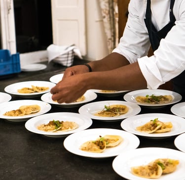 Dîners privés, mariages et événements d’entreprise. Cuisine française et fusion multiculturelle, menus sur mesure et gestion des allergies. 12+ ans d’expérience, 150+ prestations réalisées,